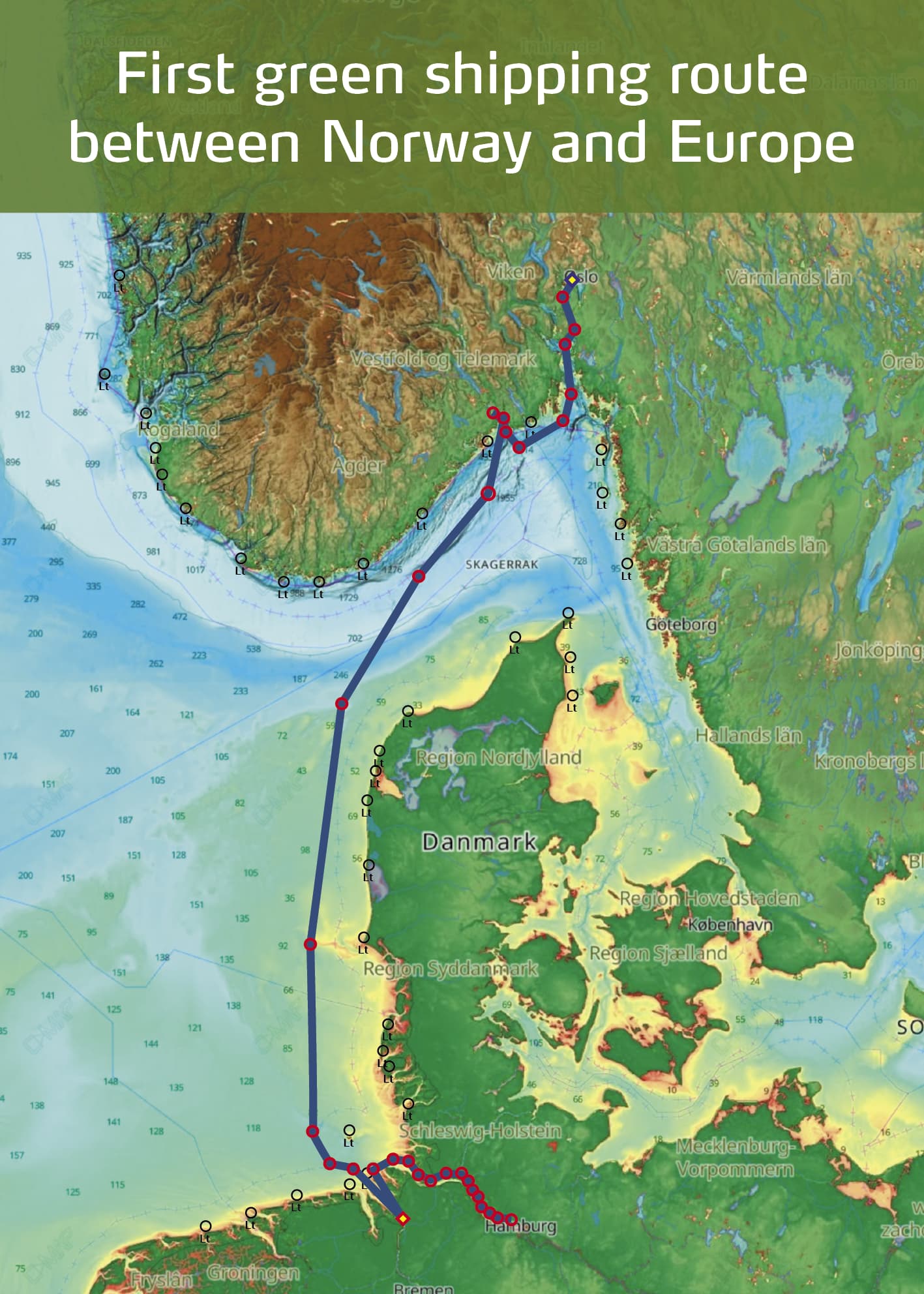 Yara Eyde is optimized for the trade corridor between Norway and Germany and will operate between Oslo, Porsgrunn, Hamburg and Bremerhaven. From 2026, Norwegian companies can trade their products emissions-free in and out of Norway. Yara International is participating as cargo-owner. The fertilizer produced in Porsgrunn will be shipped emission-free to Germany, cutting scope 3 emissions with 11,000 tonnes of CO2 per year.